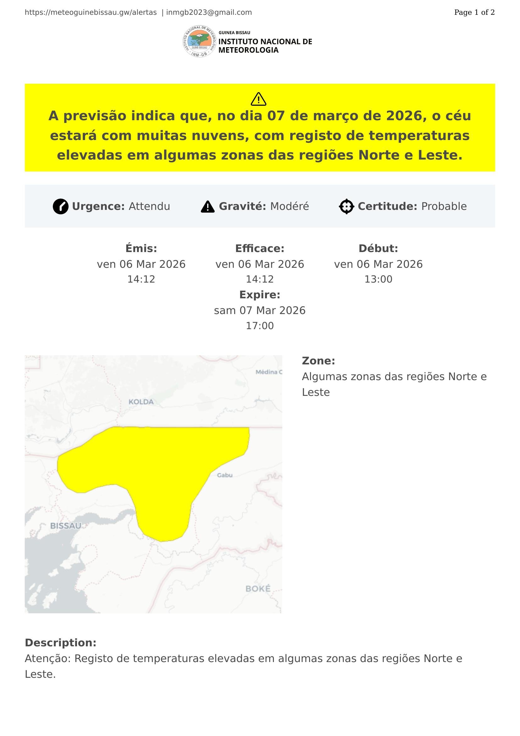 Atenção: Registo de temperaturas elevadas em algumas zonas das regiões Norte e Leste.